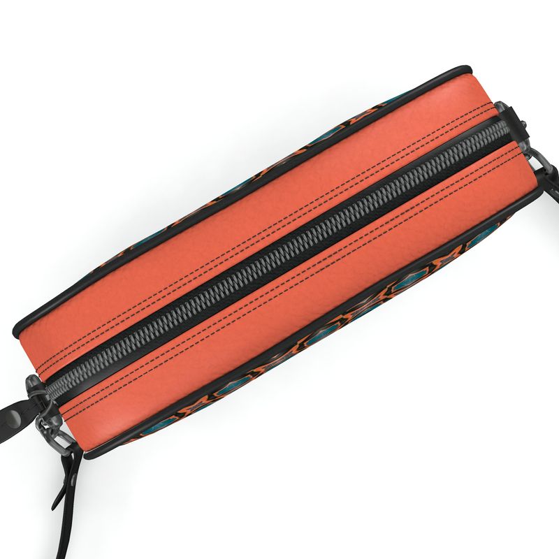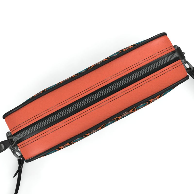 Sac Camera M-4B, extérieur en cuir Nappa 100% véritable, Passepoil et sangle noirs Imprimé, fabriqué à la main à la commande dans nos locaux à Londres.